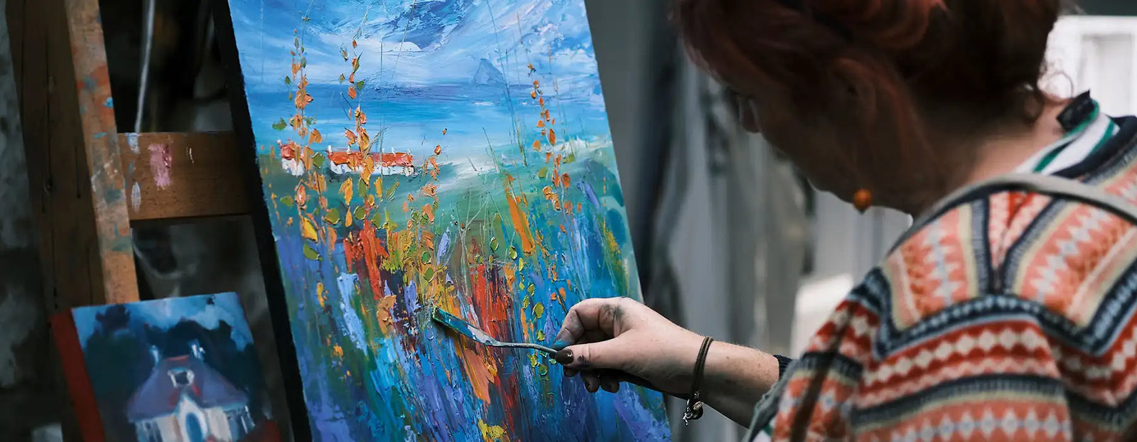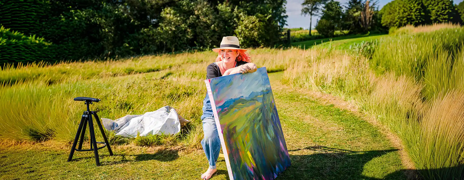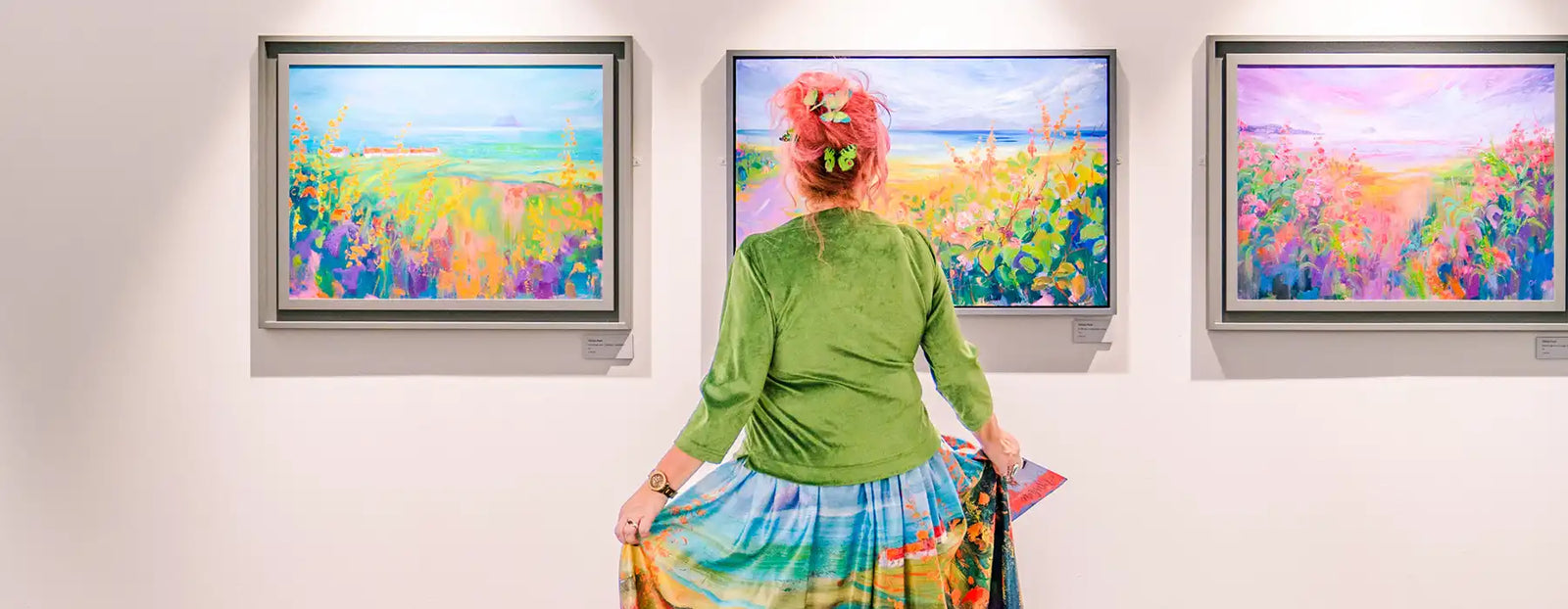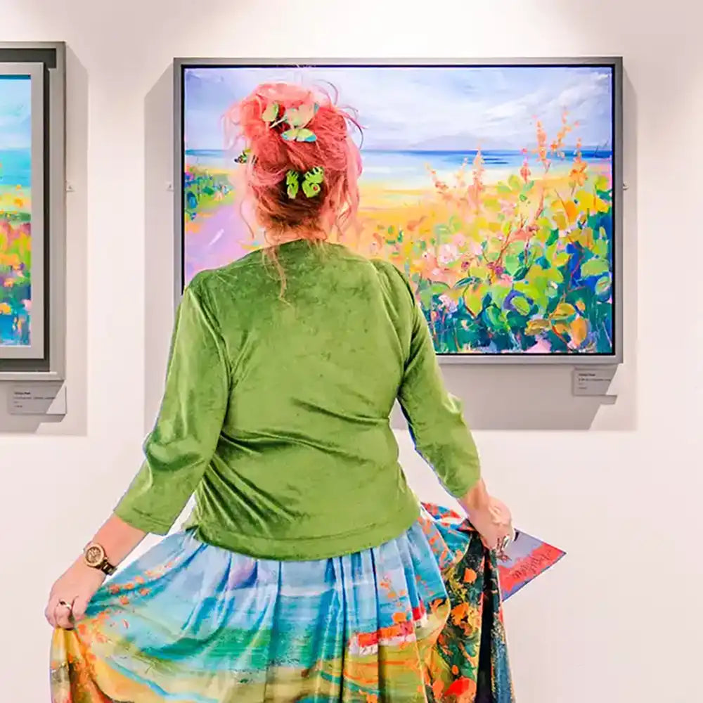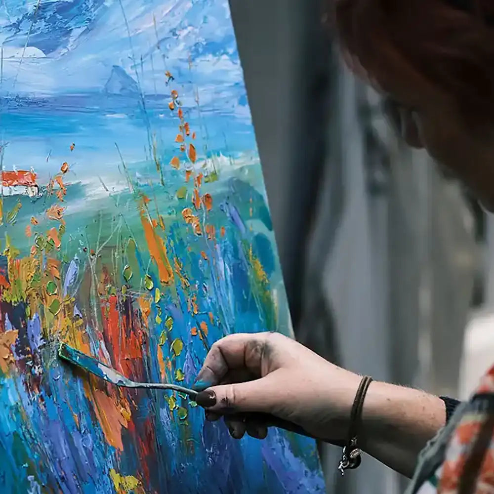 I get to hang out in my stable studio with two guinea pigs and my shadow (the dog), surrounded by glorious Ayrshire countryside which has always been a massive inspiration for my work. I’m known for big, bold, unapologetically colourful paintings - landscapes, florals, abstracts - usually in luscious buttery oils, but I get bored very easily so love to play with materials and experiment.