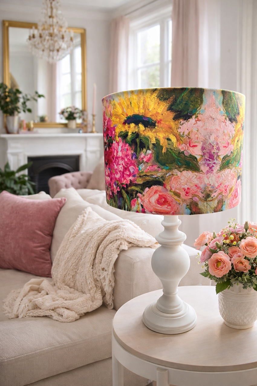 Individually designed lampshades, made in the studio and available now.