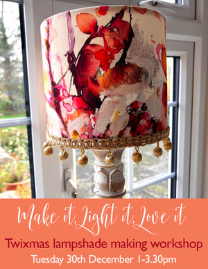 You’ll create your own 30cm lampshade using my new sumptuous fabrics in whatever design or colour you fancy (I’ll give you a wee nudge in December to choose which you'd like for your lamp). **shade in pic is 20cm shade for illustration purposes only**
