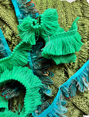 Trims may range from exuberant fringing and feathered details to refined braids and quieter edge finishes, always chosen to complement your selected size, fabric and lining. Each suggestion is carefully considered, ensuring the finished lampshade feels balanced, distinctive and just right. At this point, we will also discuss the placing of your trim to ensure your shade is one of a kind.